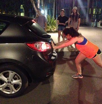 The annual Iron Person contest was held after Spring Festival, and saw men and women competing to be named Menzies strongest person. Pushups and planking awaited the contestants on the astroturf, before the finalists moved out to the carpark to push Kate’s car.