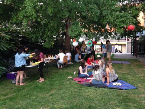 Spring has sprung and so has Spring Festival. A time to enjoy a chilled Friday afternoon with friends, Spring Festival is one of the more relaxed events on the Menzies calendar. With the chemical smell of tie dye wafting through the air, the 2015 Spring Festival, held on the 2nd of October, saw paper cranes and lanterns hanging from the trees and picnic blankets scattered across the courtyard. Homemade chocolate crackles and honey joys disappeared in a blur of hands, whilst soft drink overflowed from cups as people enjoyed spiders. For the more arty amongst us, henna, colouring in and bracelet making was also available for entertainment.