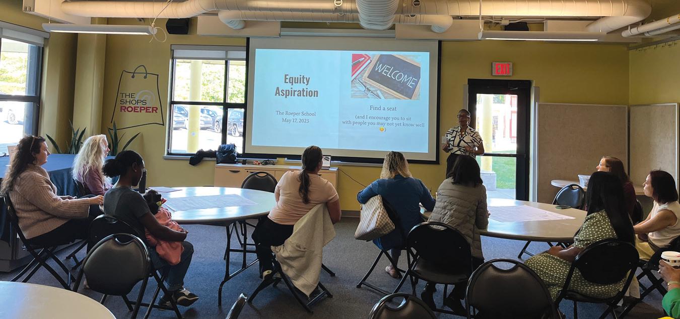 As part of this process, Kori visited us on campus last week to engage with families, faculty, staff, and students to gather their perspectives as we develop the equity aspiration that will orient the next phase of our work when we return to school in September Community members who were not able to attend one of the in-person sessions were able to share their voices by completing an online version of the Roeper on the Cover activity (See the graphic we worked with in groups below )