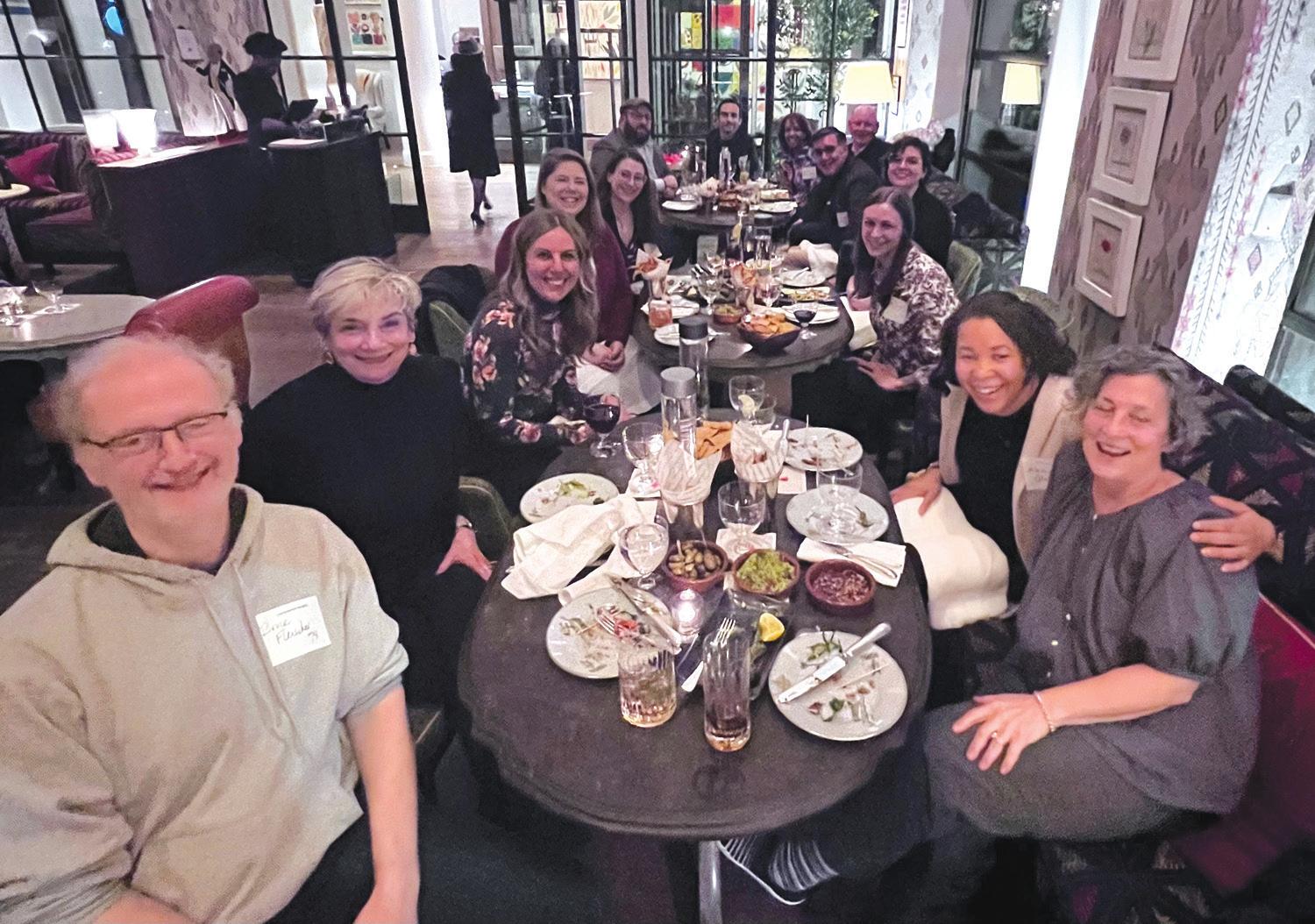 < L to R at the New York gathering: Bruce Fleischer ‘78, Hillary Burnett ‘72, Juliette Olejnik, Hannah Lawrence ‘06, Adela Jaffe ‘09, Dan Rubin ‘00, David Glazek ‘95, Denita Banks-Sims, Eric Peterson ‘95, Christopher Federico, Taylor Hartley ‘10, Maggie Badore ‘06, Alana Glass ‘97, Emily Cohen ‘76