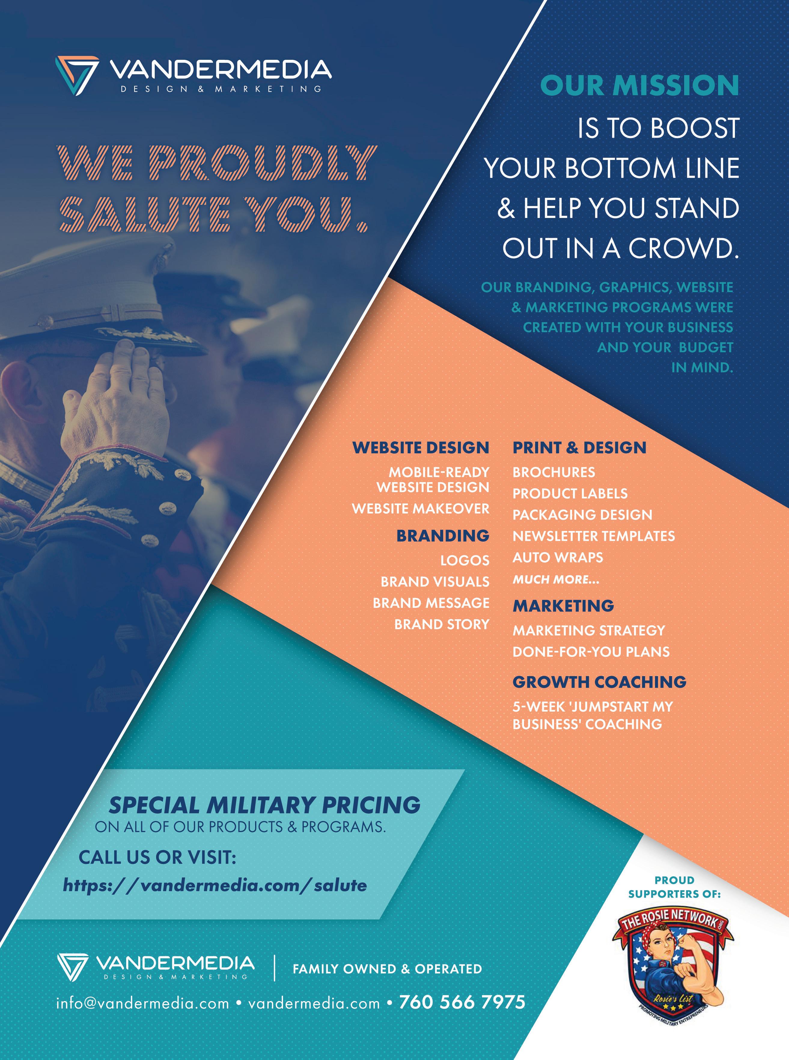A publication ‘By & For’ the Veteran and Military Spouse Entrepreneur powered by The Rosie Network, a nonprofit organization. Approved for DoD Distribution. Available for Housing Centers. TAPs Packets & Community Service Centers Nationwide.