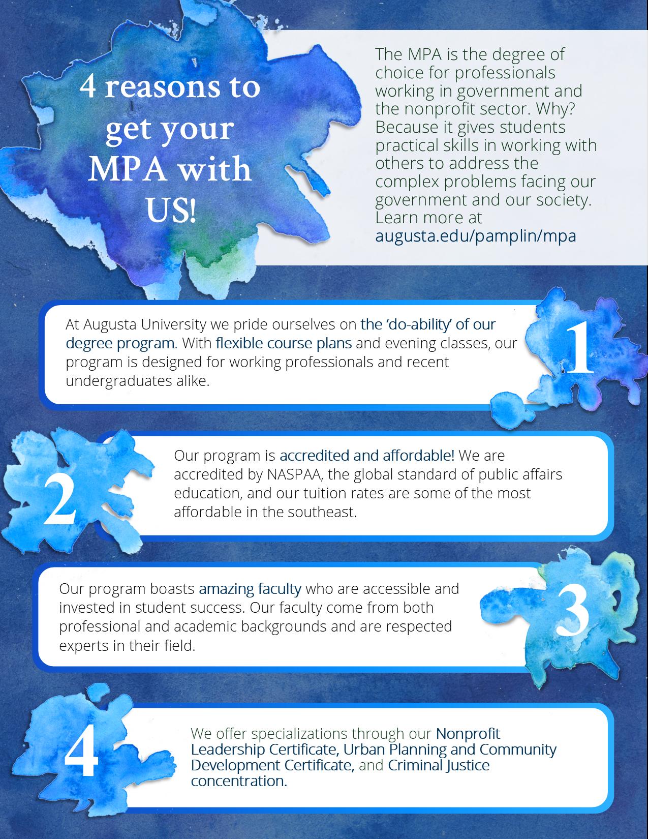 The Master of Public Administration (MPA) program at Augusta University is recognized as a leading educator of professionals who