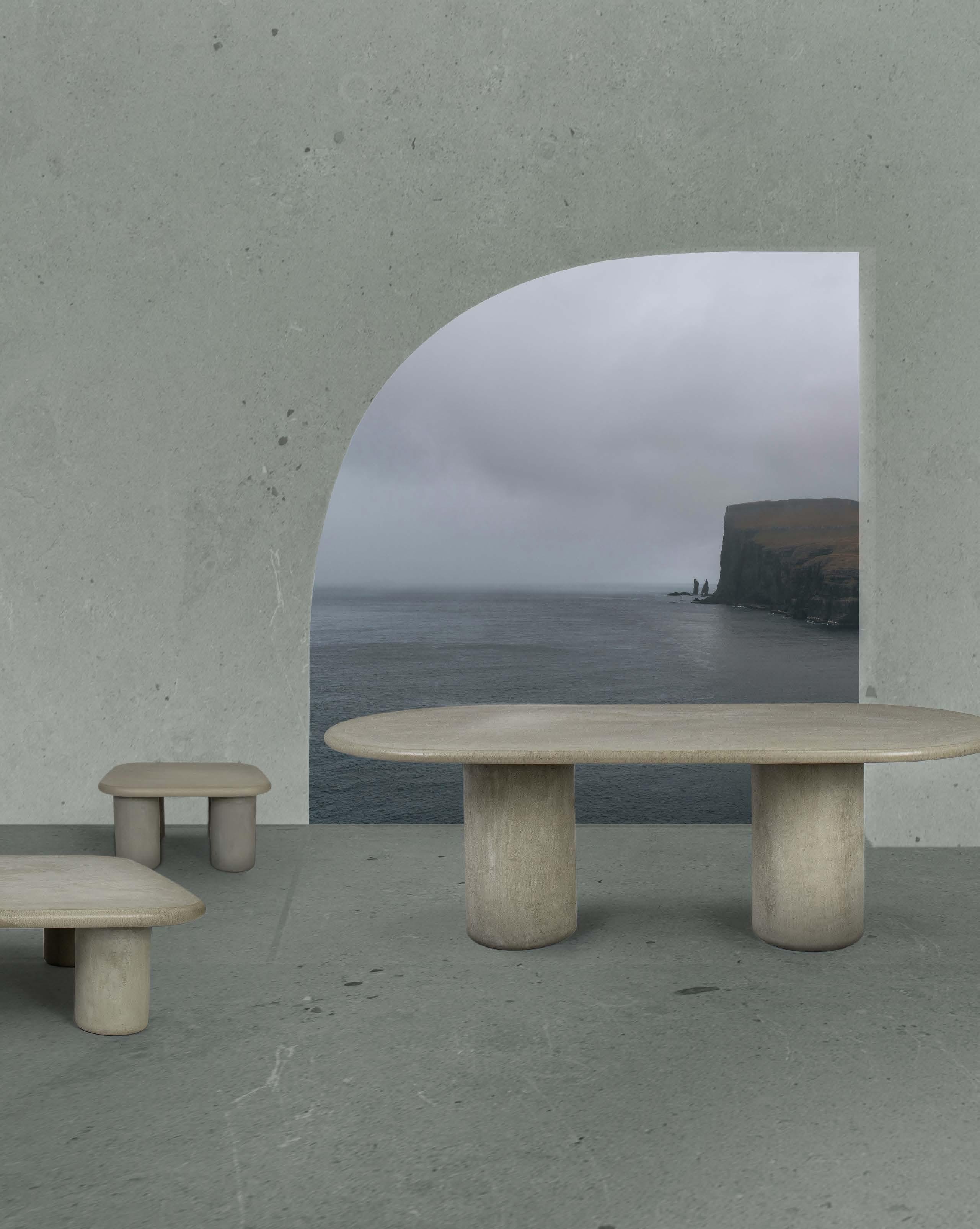 A table collection inspired by the tactility of textures we encounter in our surroundings. Every environment is characterised by its typical texturised elements. This uniqueness can be found throughout the handcrafted collections. The beauty of nature is reflected in each table through the soft and organic forms.