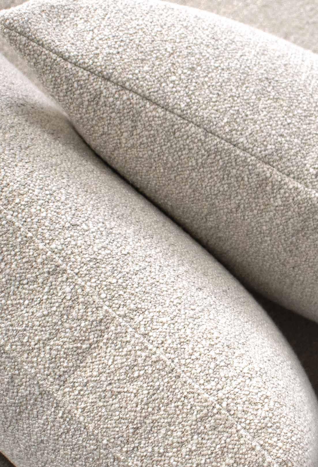 Fully upholstered two seater sofa in a soft, textured fabric in a neutral chalk tone.