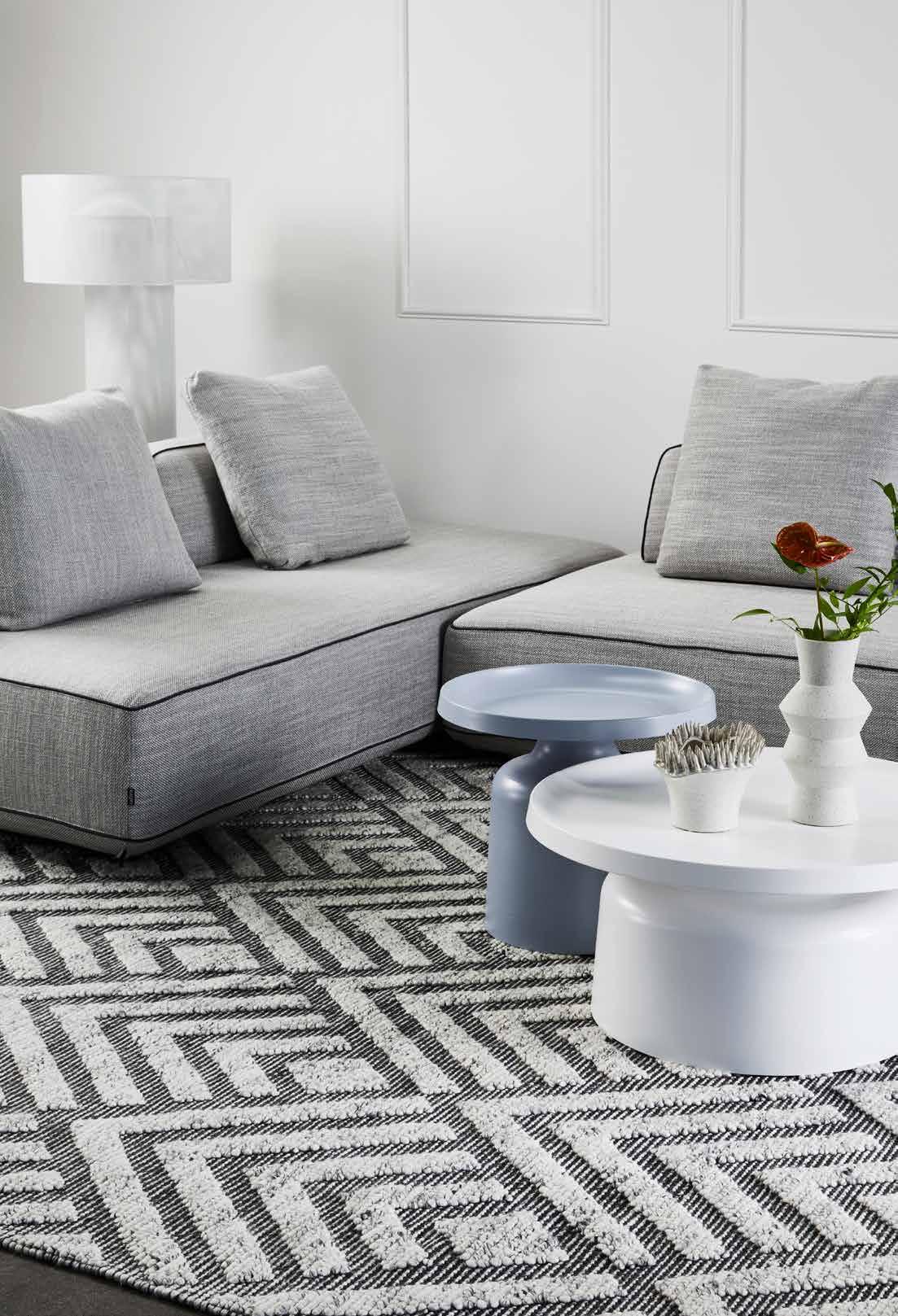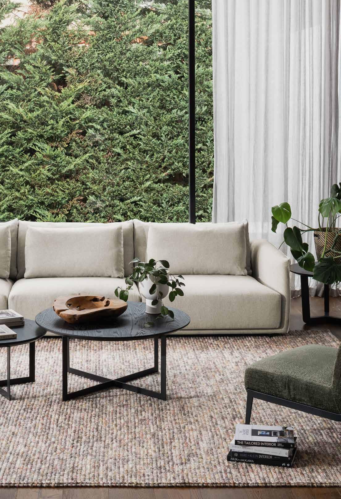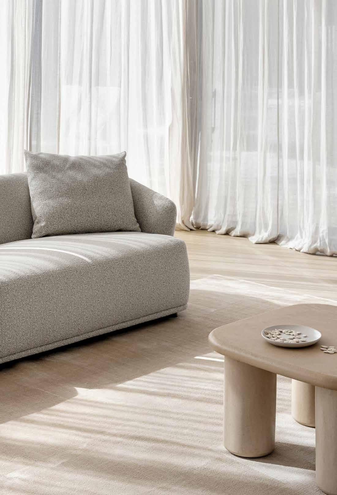 FEATURED Teddy Sofa in Almond, Frida Rug in Latte and Laini Tables in Stone