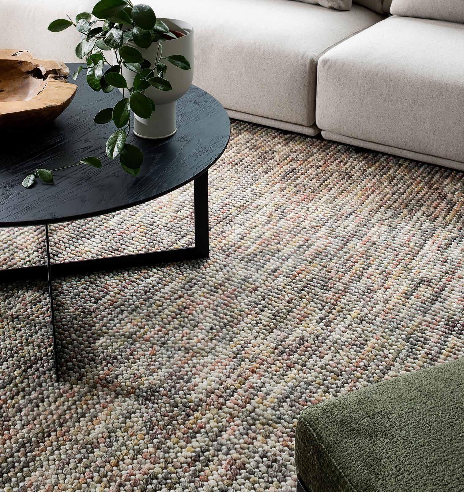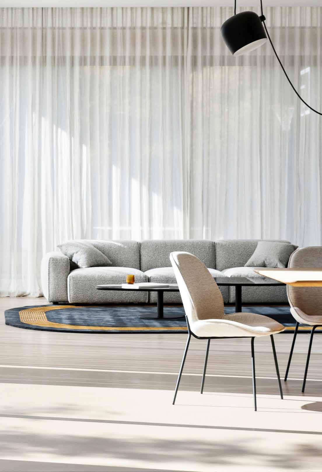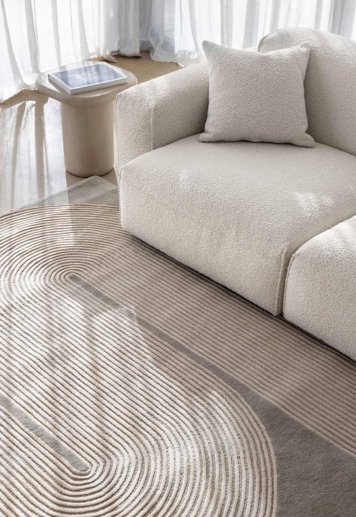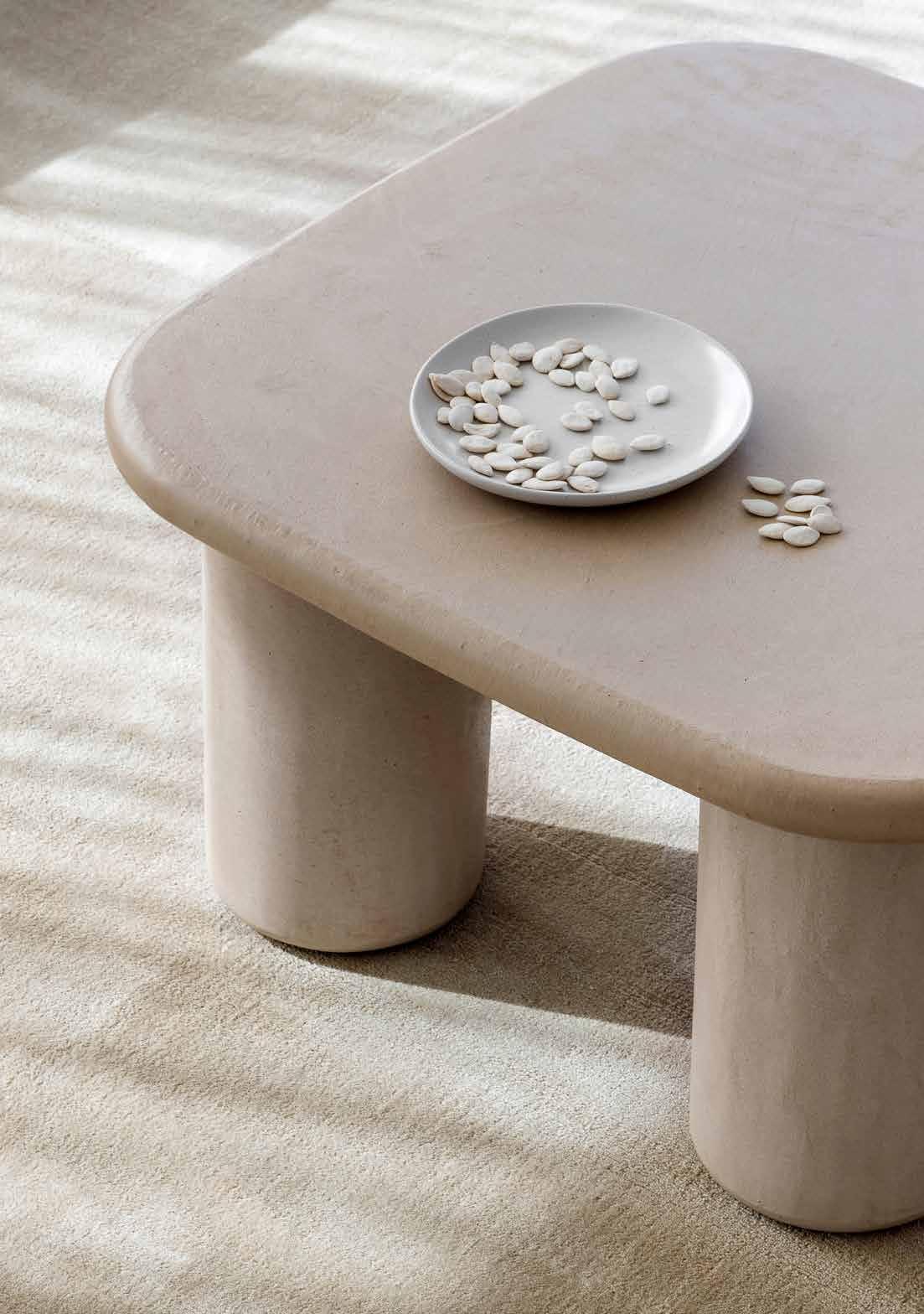 FEATURED Teddy Sofa in Almond, Frida Rug in Latte and Laini Tables in Stone