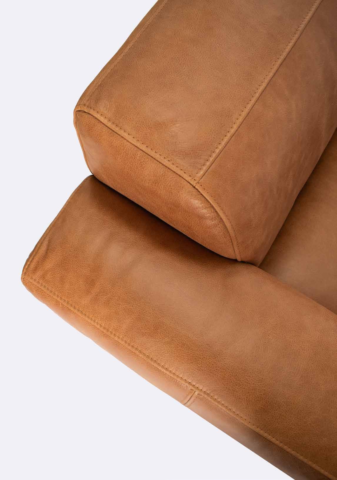 Contemporary European design 3 Seater Leather Sofa. Fully upholstered in semi-analine leather with left and right chaise options.