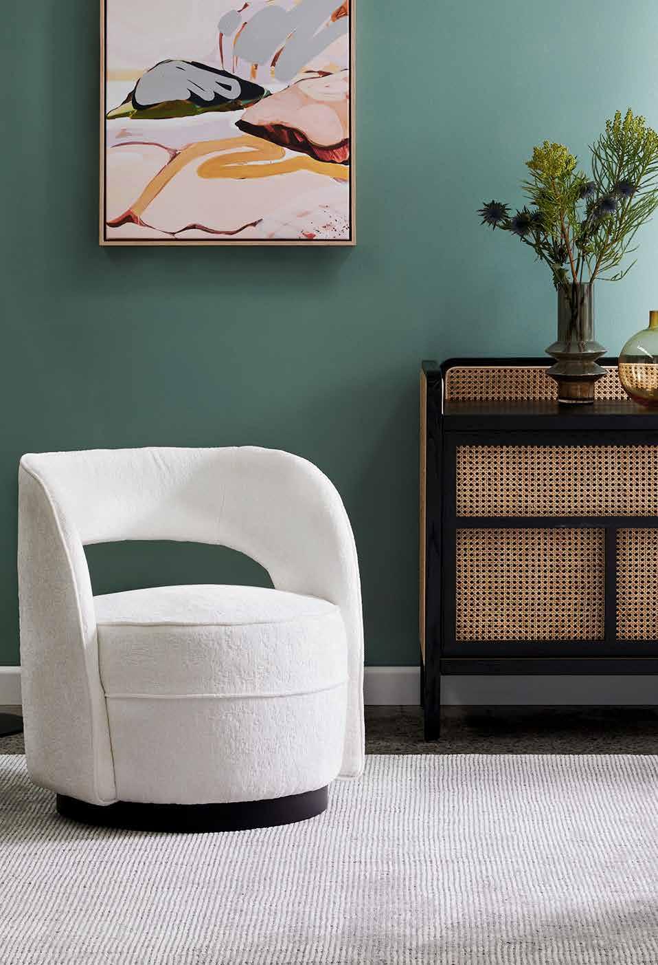 A collection of fully upholstered occasional chairs in textured fabrics, from boucle to soft velvet.