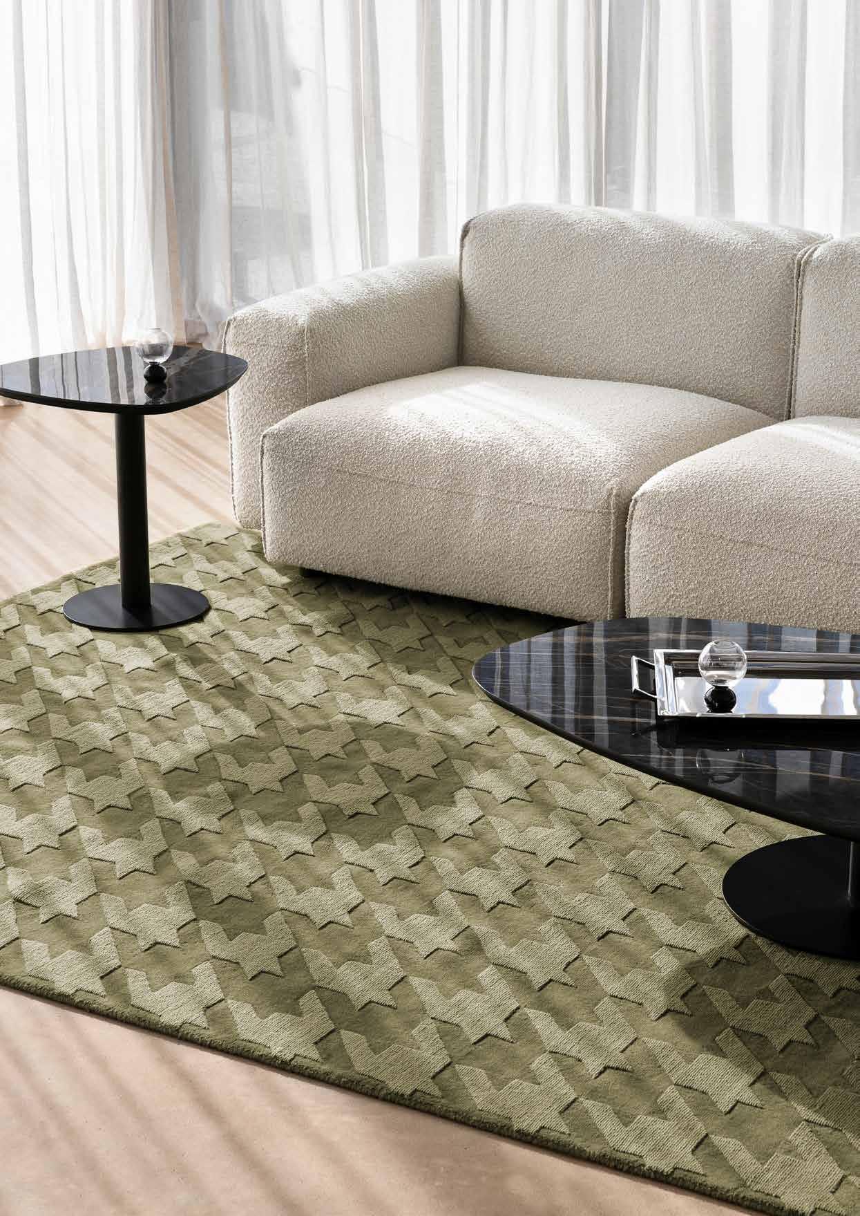 FEATURED Felipe Lounge Chair in Shadow, Laini Coffee Tables in Olive & Dillon Rugs in Taupe