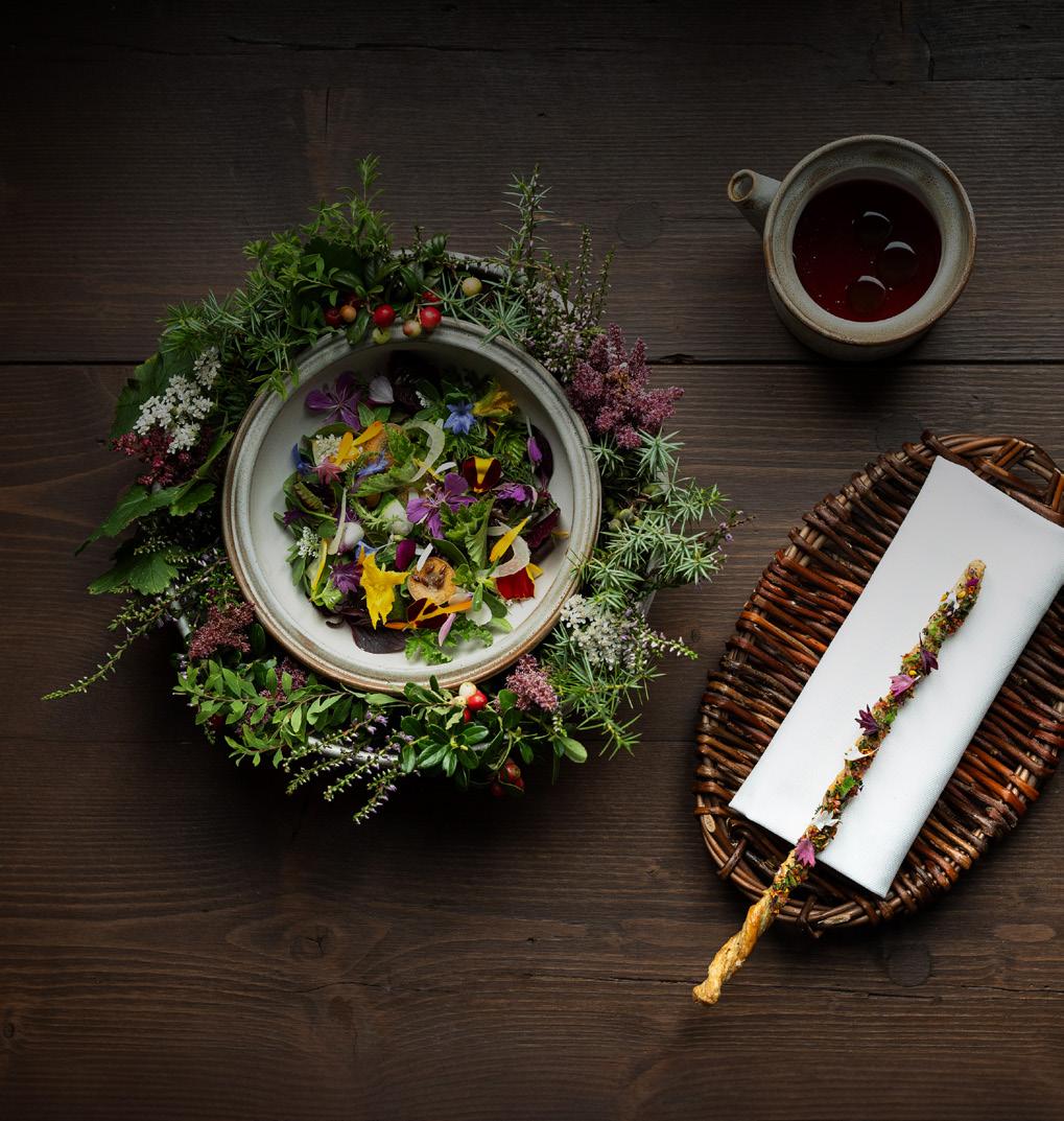Chef Norbert Niederkofler’s “Cook the Mountain” philosophy stands at the heart of Atelier Moessmer’s swift rise to culinary stardom. The 14-course tasting menu, priced at €320, showcases the chef’s dedication to local ingredients and innovative techniques. Each dish tells a story of the surrounding landscape, from the summer salad featuring up to 30 different mountain herbs to the twicesmoked summer trout adorned with elderflower in various preparations. The menu demonstrates an unwavering commitment to sustainability and local sourcing – also earning it a Michelin Green Star. Dishes like the white fish tartare utilise every part of the fish, while