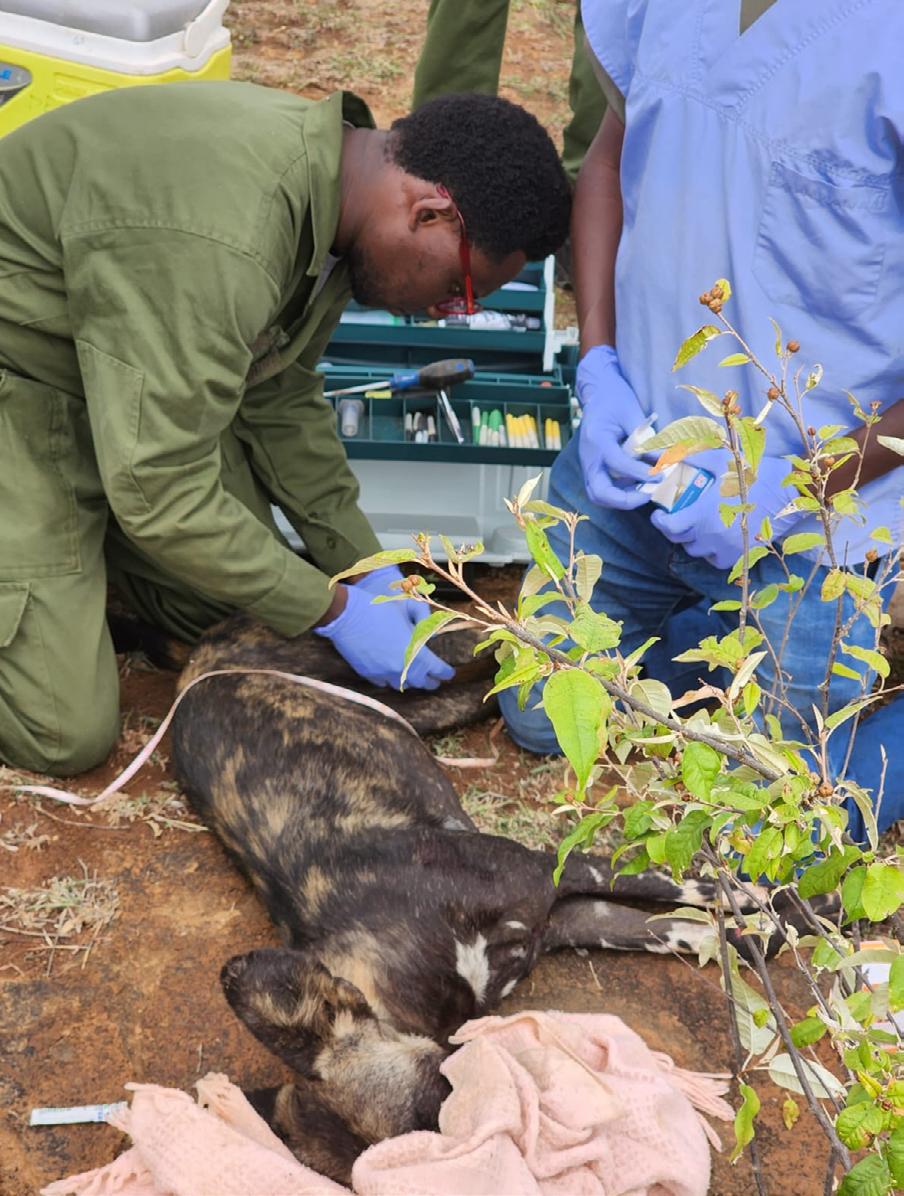 Mpala work to locally eliminate rabies by vaccinating domestic dogs, protecting both human health and painted dogs. Their outreach programme uses theatre to promote vaccination and reduce painted doglivestock conflict. In 2017, a canine distemper epidemic devastated Laikipia’s painted dog population, leaving only two survivors from 20 packs.