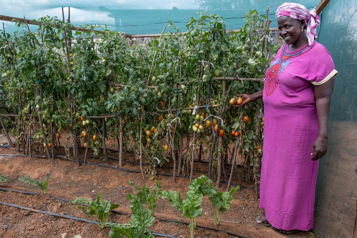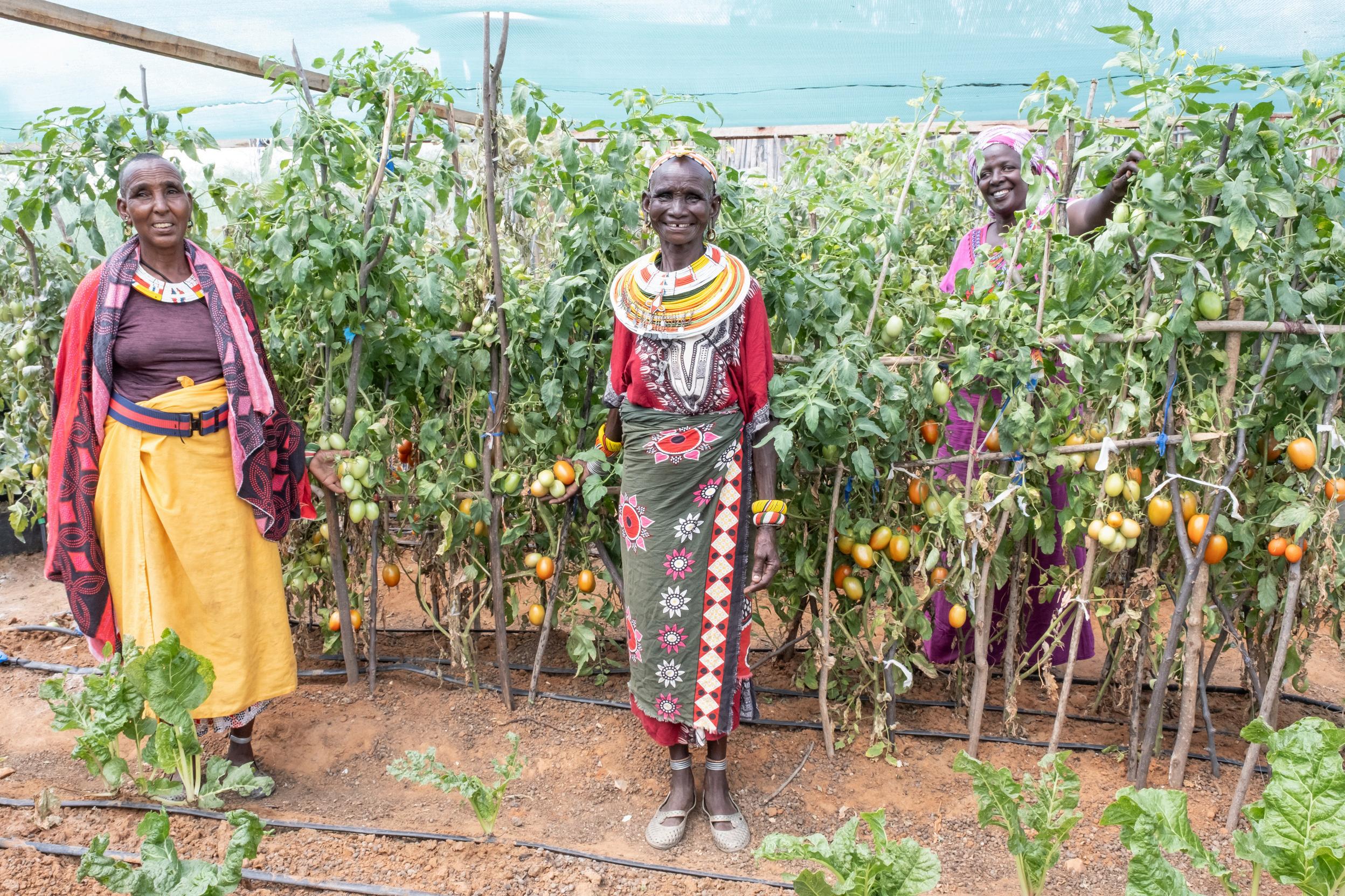 | Proud gardeners of Ndonyo Wasin show off the bounty of their garden