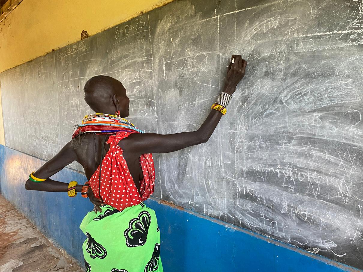 |Young girl learning to write at Nalutake School