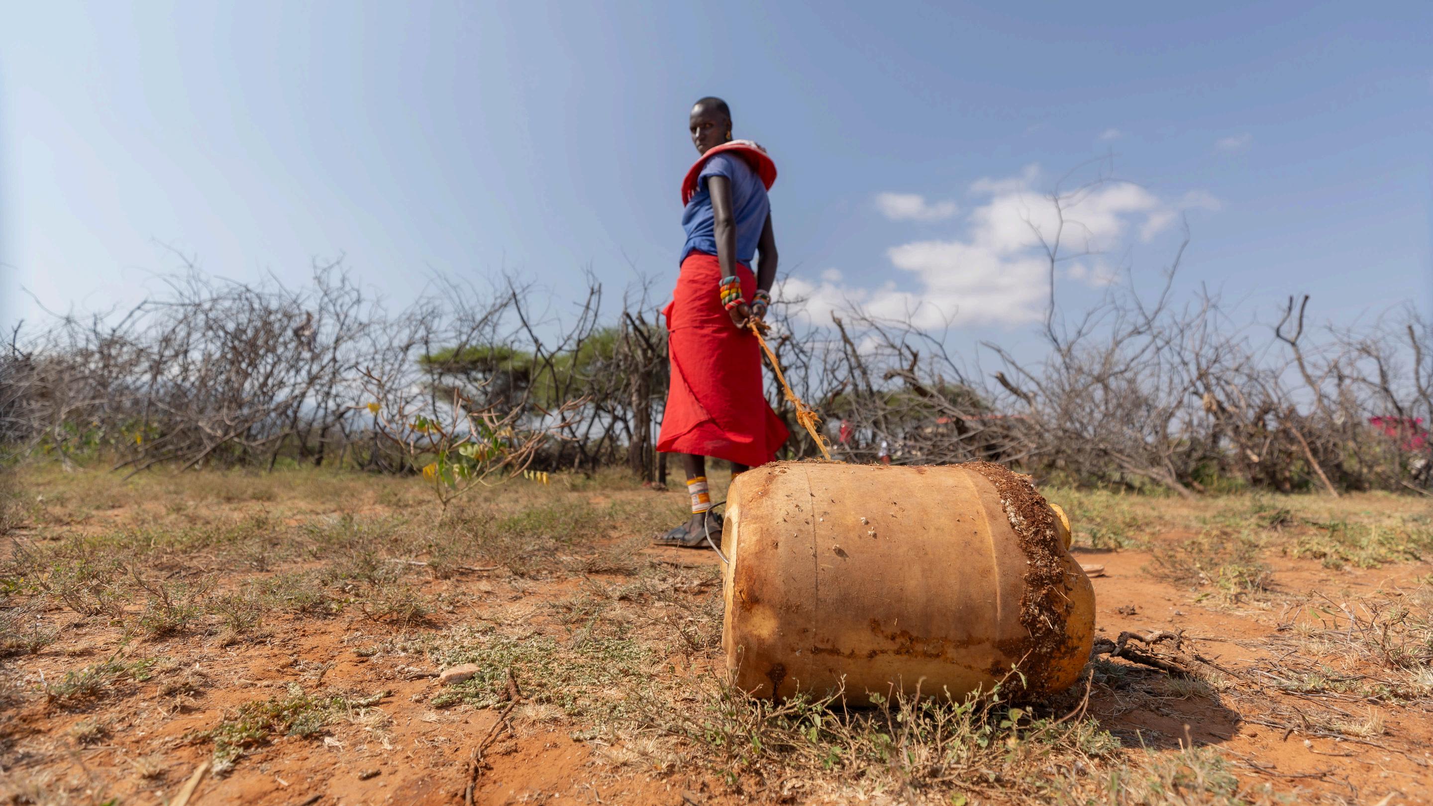 Woman filling jerry cans at Ndonyo Wasin well