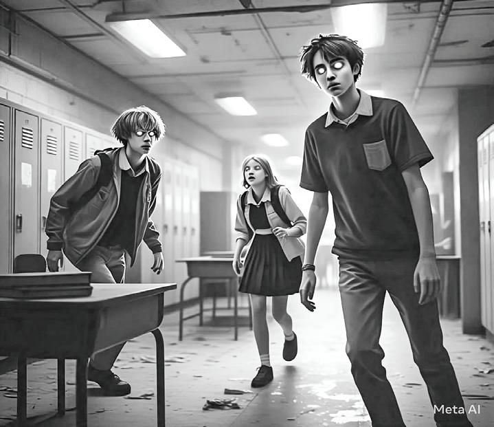 On a dark and stormy day, Advanced Photography students Stella Vegezzi (’25), Oona Schulweis (’3045) and Rhian Bruce (’25) began to work on an extra credit project for photo teacher Martin Ledford. ey desperately needed to bounce back a er failing to upload all their ics in JPEG format (but like why does Ledford love JPEG so much??).