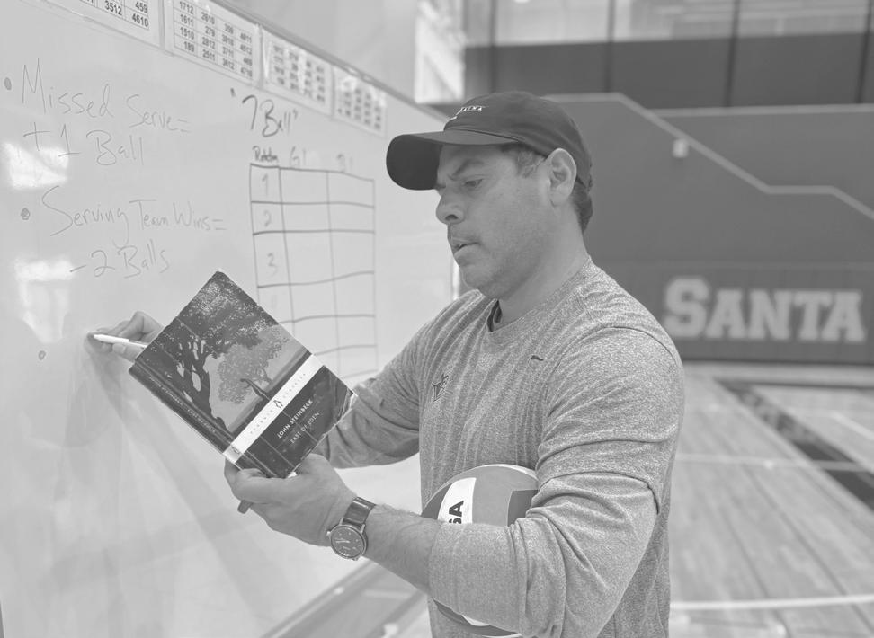 Pete Barraza reads “East of Eden” while holding a volleyball, as is characteristic of most highly productive teachers with a knack for multitasking.