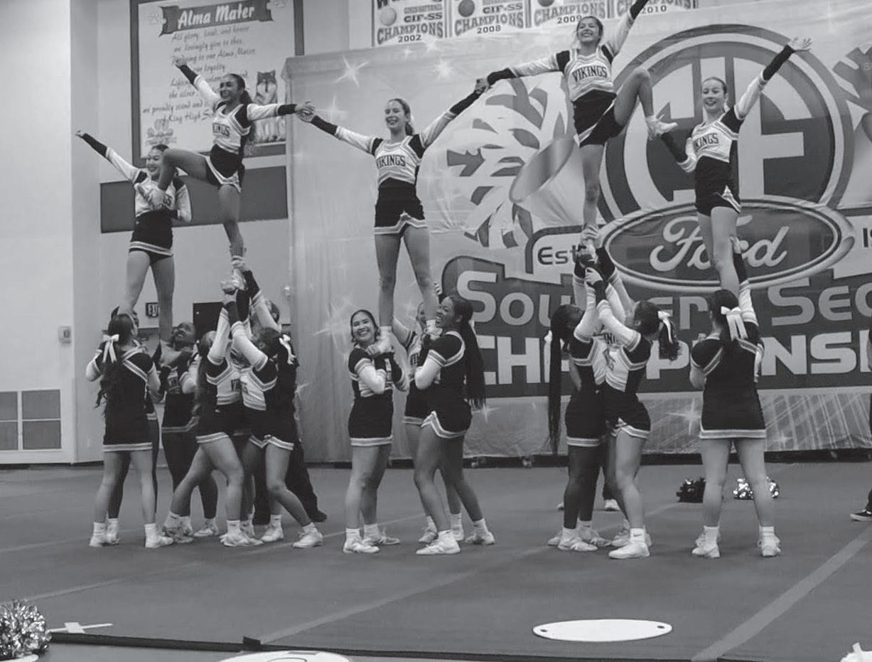 In competitive cheerleading, teams are evaluated on their cheer, stunt difficulty and dance. The team executed their