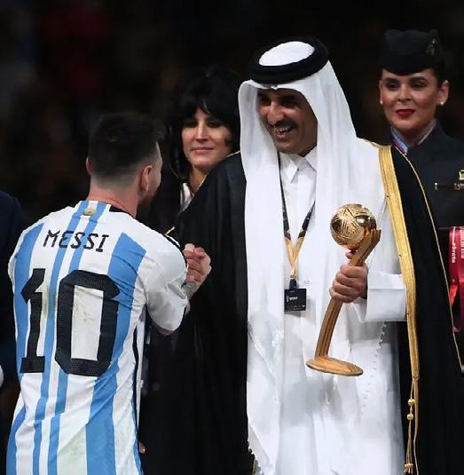 He pulled out a golden fringed bisht, the black cloak worn in the Gulf for special occasions, and wrapped it around Messi’s shoulders before handing over the 18-karat gold trophy.