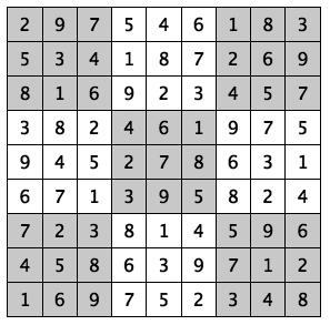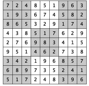 Every 3x3 square must contain the numbers from 1 through 9