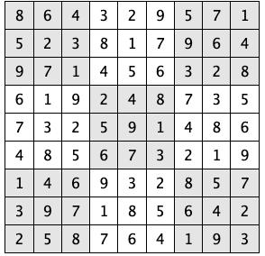 Every 3x3 square must contain the numbers from 1 through 9