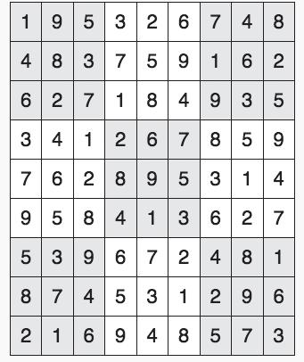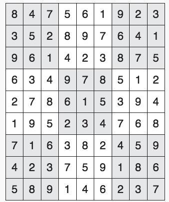 Every 3x3 square must contain the numbers from 1 through 9