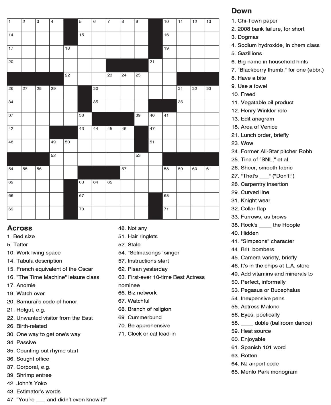 Answers to the Sudoku and Crossword on page 21