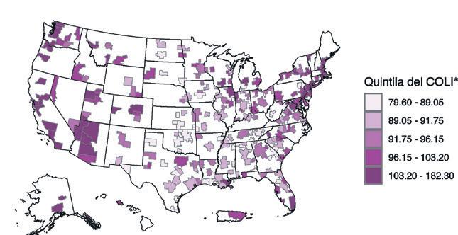 Data presented in map form in the analysis shows that among the top 10 MSAs with the largest numbers of people identified as Puerto Rican, five have higher costof-living indices than the San Juan-Bayamón-Caguas MSA.