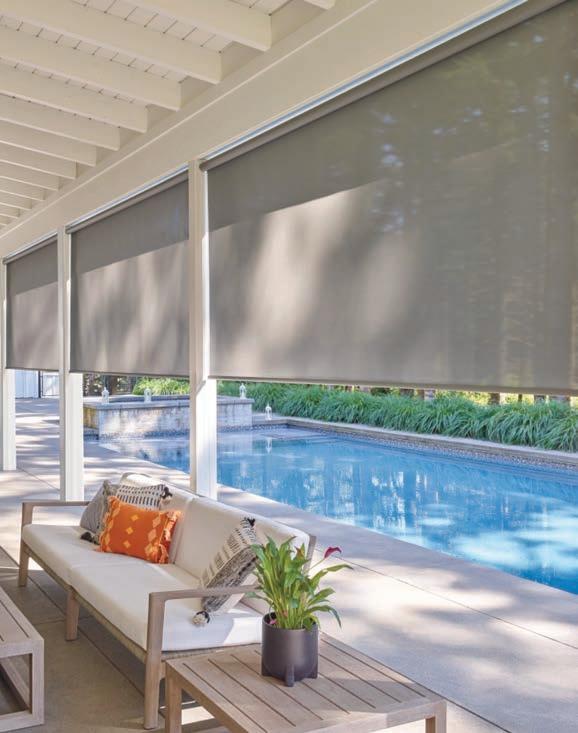 Beat the heat, but still keep your view. Block 75% to 99% of the heat and UV rays. Sunscreen shades o er privacy and style. Available in 100’s of patterns, designs and colors. Free Installation and Free Estimates.