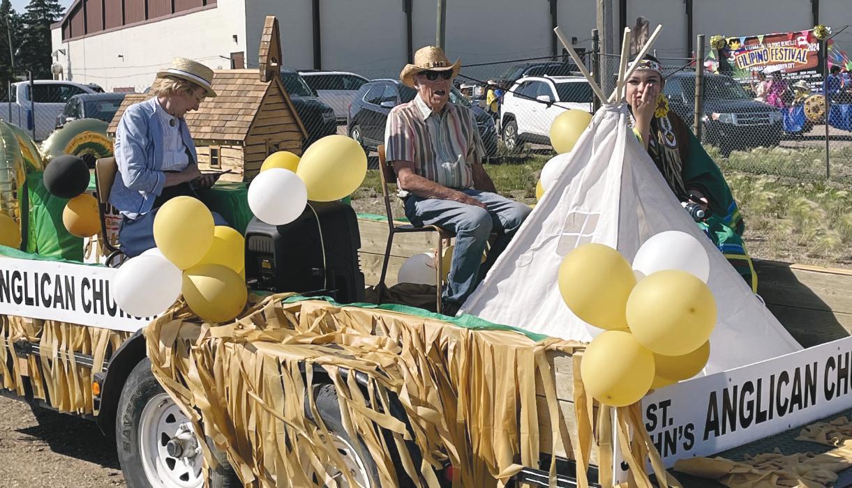Several days later, on the Wednesday, we had a float in the Lloydminster Exhibition Parade, featuring a model of the Log Church and a teepee, once again symbolizing the historic partnership between our two groups.