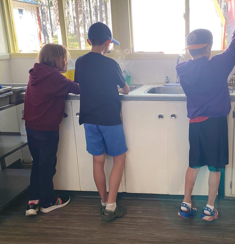 On Saturday morning, the campers enjoyed breakfast on the deck attached to the camp Mess Hall. All the meals were prepared by Jill Gloin and Gillian Sandham, both from St. Barnabas Anglican Church, Medicine Hat, and the campers appreciated their delicious efforts.