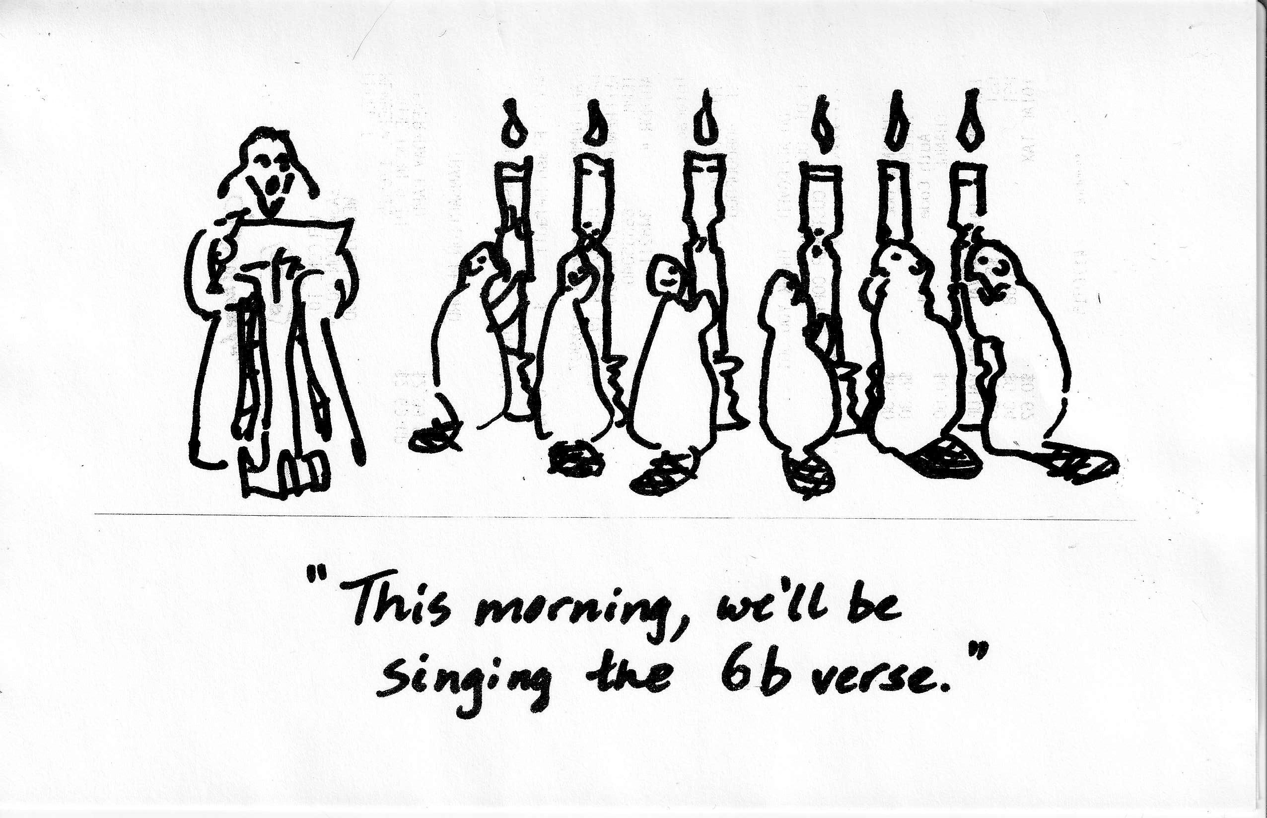 This humourous cartoon is attempting to show what happens when six beavers decide to participate in church. Photo courtesy