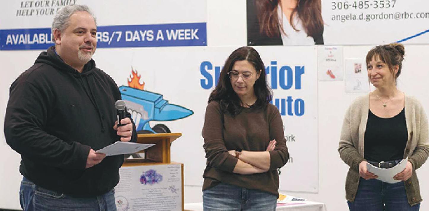 Terry Grant, Krista Crellin and Kara Kinna with the Moosomin Visual Arts Centre update the community chamber on the centre's progress.