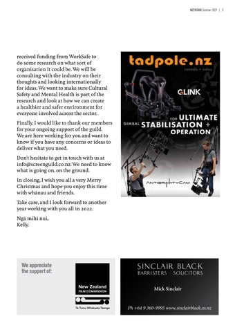 contents are copyright Screen Industry Guild Aotearoa New Zealand Inc. 2017, unless indicated otherwise. May not be reproduced, copied or transmitted in any form without permission. The views expressed in this publication do not necessarily reflect the views of the Screen Industry Guild Aotearoa New Zealand Inc.