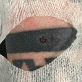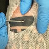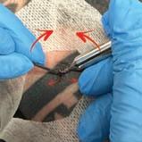 Consider the direction of the base, and use your 12g needle to make a pocket on either side of the hole as shown. Take care to ensure you are under the dermis when making this pocket, and not too shallow.