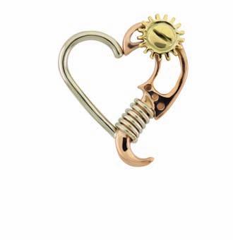 clients. From crystal snakes to dangling chains, the ever-growing range of internal attachments are available in 14ct yellow and white solid gold, a perfect match for Tish Lyon’s quality titanium stems.