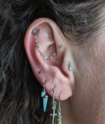I’ve been piercing for around fiveand-a-half years, starting part time, and then building up my time at the studio and the business since then.