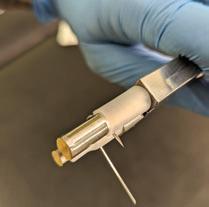 1 First off, when performing a forward helix piercing from back to front, you need to consider the needle you will be using. The most common will be a U-bend made on a blade needle, with the bevel facing out from the bend. The length of the needle may vary depending on your preference; in the image, a two-inch needle is shown.