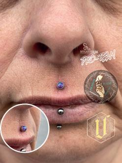 You need to find a placement that accommodates both the attachment and the labret post. Remember to take into account the extra length of the initial post you need, making sure it won’t sit against the tissue.