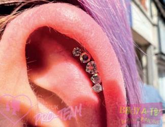 I’m going to take you through a few of the considerations you need to address when piercing a forward helix from back to front. As with most piercings, you can tackle them in a host of different ways, but I’d like to walk you through my go-to method.
