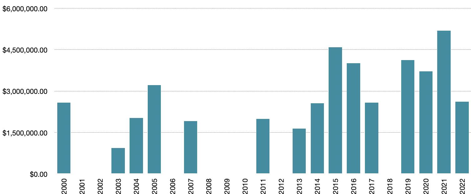 The coveted Seadrift neighborhood continues to raise the bar for real estate in West Marin. Oceanfront sale prices increased 8% in the last year and have increased 123% since 2019. Seadrift Lagoon sale prices increased by 55% since 2019 from an average of $3,300,000 to an average of $5,200,000. Seadrift Lagoon vacant lot sale prices have also increased drastically, up 135% on average since 2019, with the highest lot sale at $3,250,000.