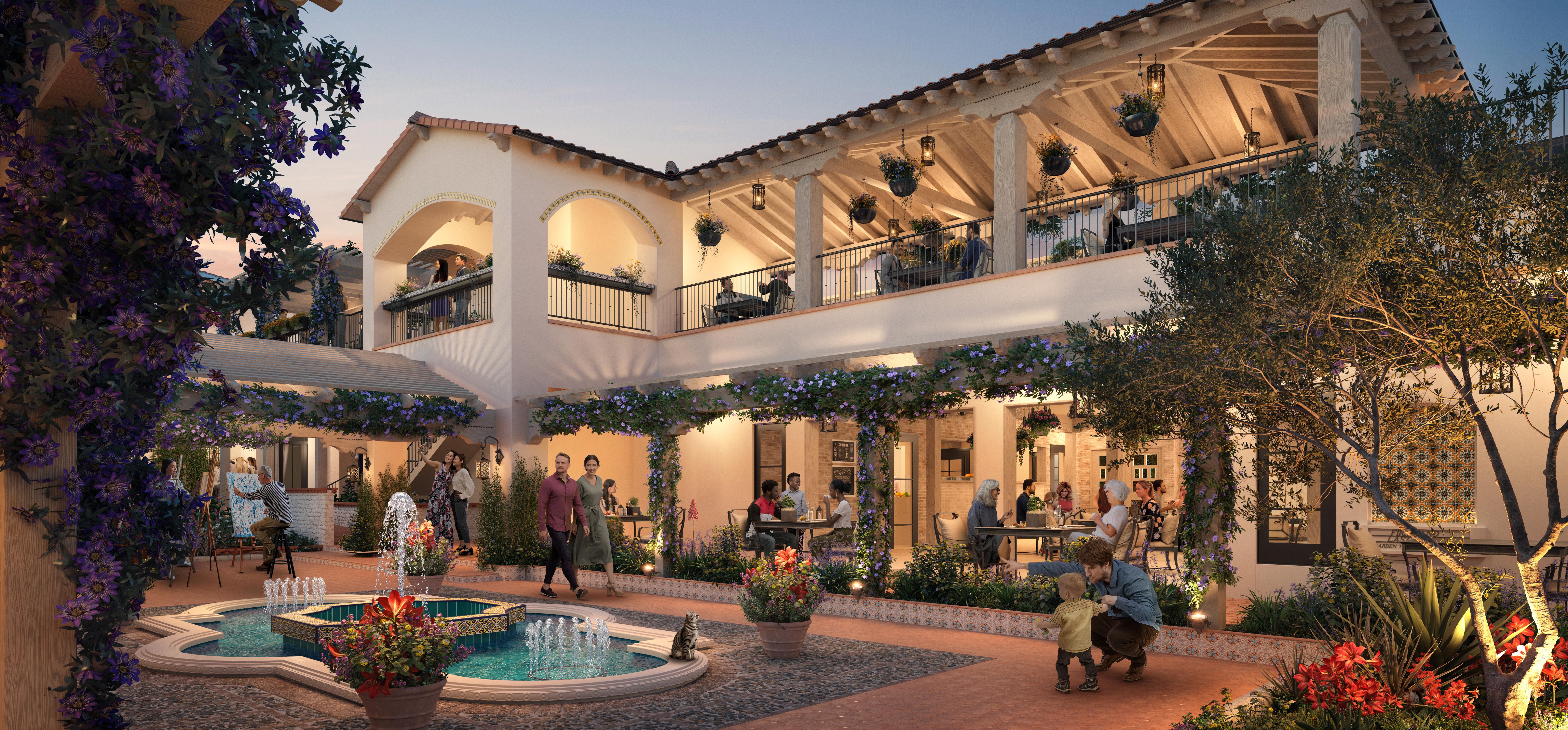 Tea Garden with view of Garden-to-Table restaurant and roofdeck.