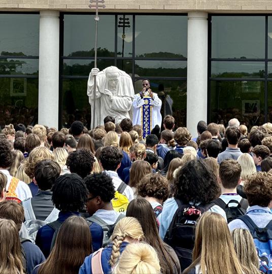 Pope Saint John Paul II Preparatory School now finds itself approaching another milestone, and the echo of the past “Duc in altum” is ringing throughout the community once again. A new and bold strategic plan, Vision 2028, undoubtedly inspired by the Holy Spirit, urges us to move to new depths to encounter Christ: new depths to embrace our recently added and growing Middle School students and families; new depths to live the charisms of our patron Pope Saint John Paul II; new depths to challenge our young people academically, spiritually, and physically through programs taught and coached by an inspired, Christ-filled faculty; and new depths to realize the school’s potential and vision to form young people who love God, self, and neighbor, seek Truth, serve others and lead courageously. Today is not a season of “more of the same.” Instead, it is a time for building, creating, and pursuing more for the kingdom of God. It is once again a season of “Duc in altum.”