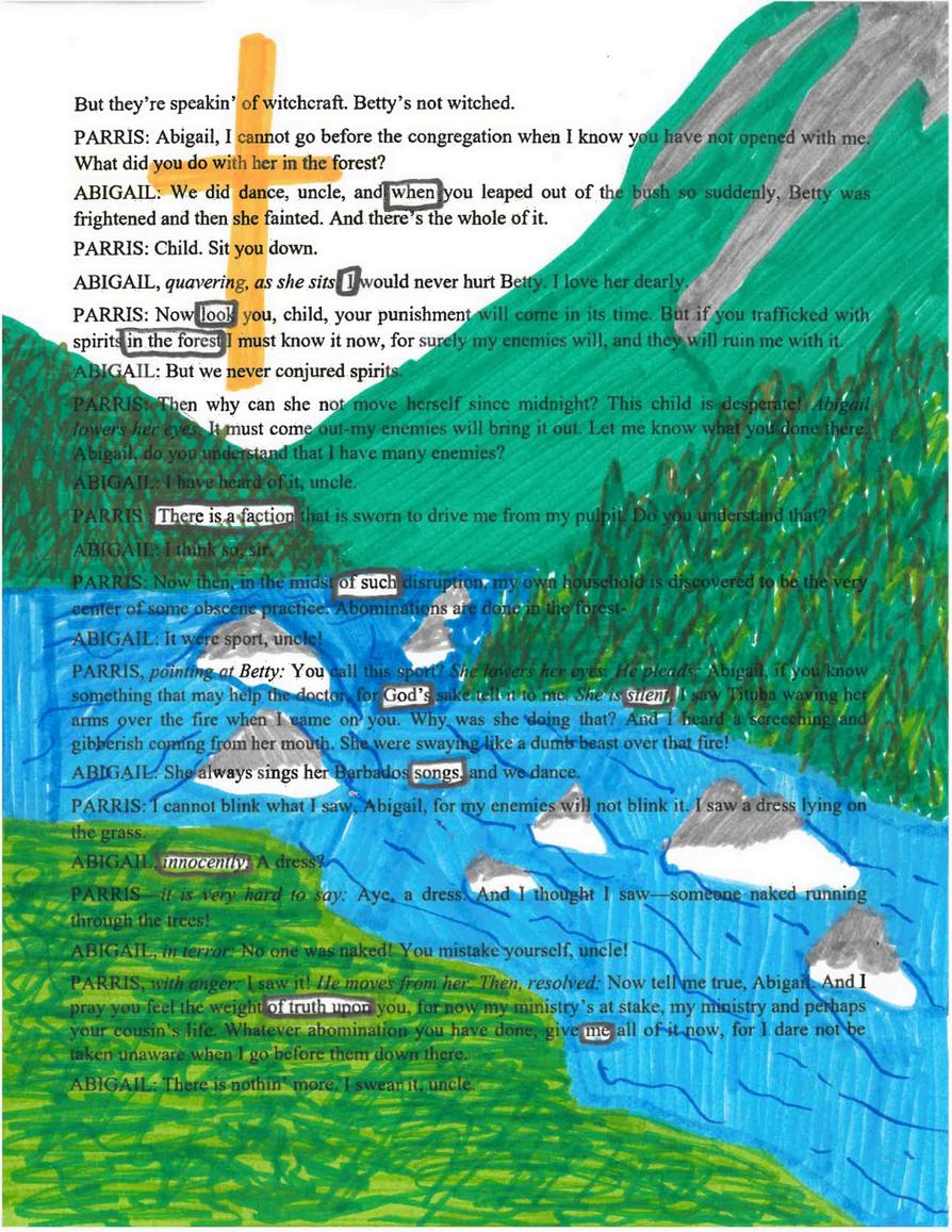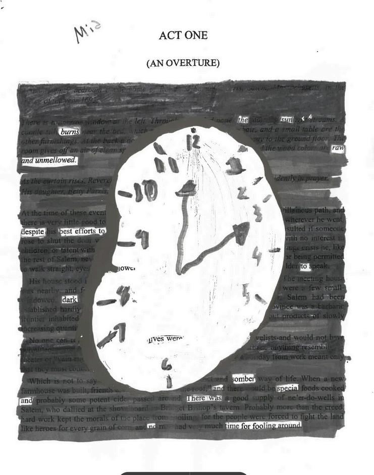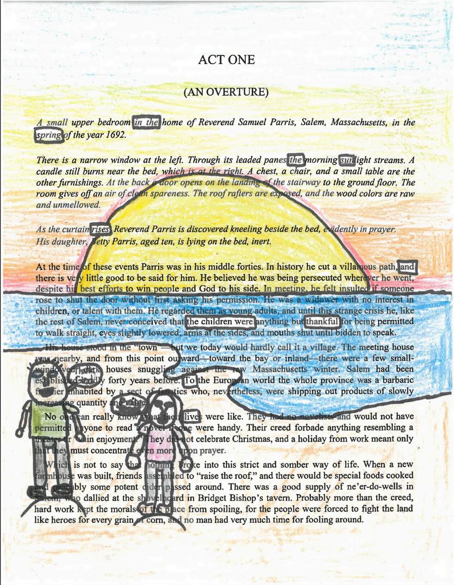 Combining “found poetry” with art, these are a signature project in 8th Grade English using two of our anchor texts, The Crucible and The House on Mango Street.