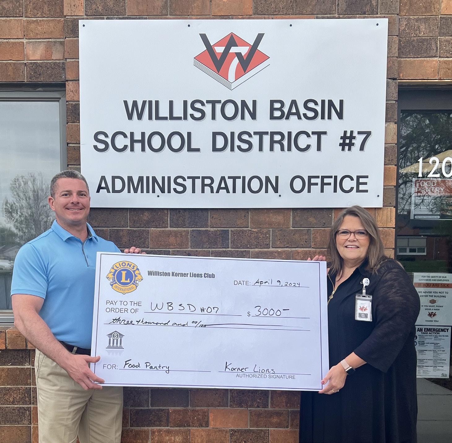 WILLISTON — Last week the Williston Basin School District 7 received a donation from the Williston Korner Lions Club to aid in the funding of the district’s food pantry.