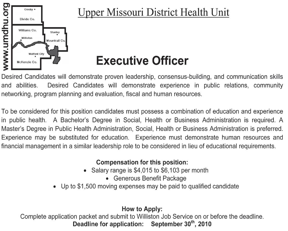 Administrative Assistant. Williston Community Library. Apply online at www.governmentjobs.com/careers/ willistoncityofnd