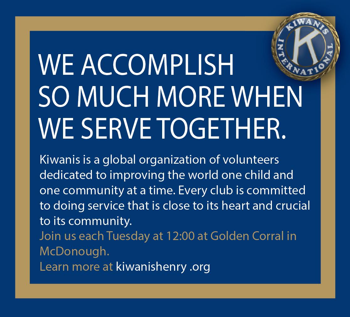 Kiwanis – 12:00pm - 1:00pm Golden Corral McDonough
