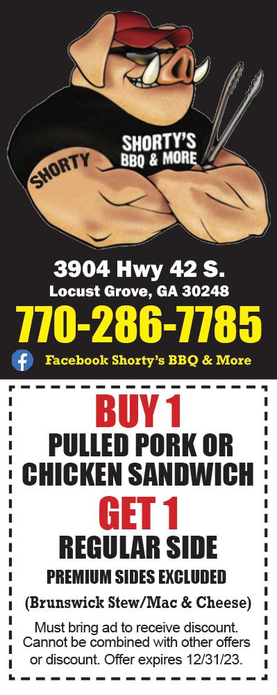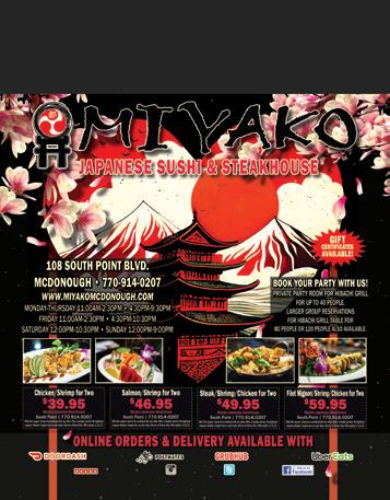 More Than Just A Magazine! At TheShopper.net, we offer a full-range of printing, graphic and mailing services as well as advertising opportunities in our monthly/bi-monthly magazines, quarterly Let’s Eat guide and yearly calendar! LETTER SHOP SERVICES MAILING SERVICES GRAPHIC SERVICES PRINTING SERVICES • INKJET ADDRESSING • MAIL MERGE SERVICES • DIRECT MAIL • STANDARD MAIL • 1st CLASS PRESORT MAIL • POLITICAL MAIL • PERIODICAL MAIL • FUND RAISING LETTERS • GRAPHIC DESIGN • ARTWORK CREATION • BROCHURES • POSTCARDS • SELF-MAILERS • NEWSLETTERS • MAGAZINES • CATALOGS • LETTERHEAD/ENVELOPES The Ultimate Food Lover’s Guide in Henry County 770-954-1983 or 770-954-1984 | Services@TheShopper.net | www.TheShopper.net 25,000 GUIDES PRINTED QUARTERLY! PICK ONE UP AT THE LOCAL LIBRARY, McDONUGH WELCOME CENTER & OVER 100 BUSINESSES THROUGHOUT HENRY COUNTY! call 770-954-1983 Closed AM 218 John Frank Ward Blvd. McDonough, Georgia 30253 (770) 957-3383 @ThompsonMarket & M 1 4 3904 Hwy 42 Locust Grove, GA 30248 770-286-7785 Shorty’s BBQ More CARRY-OUT AVAILABLE! ADVANCE FOR LARGE ORDERS CARRY-OUT Shorty’s BBQ sides substitute premium Chopped Chicken $13.29 Smoked $24.49 Sides any regular sides or substitute Chopped $19.99 Ribs $28.49 view our WINTER 2023 DESIGNED DISTRIBUTED The Ultimate Food Lovers Guide Henry County Full Page.........................................................$500*/issue Half QuarterPage........................................................$300*/issue Page..................................................$200*/issue Back Cover.....................................................$1,000*/issue QUARTERLY RESTAURANT GUIDE The Ultimate Food Lovers Guide in Henry County 25,000 COPIES AVAILABLE AT 100+ BUSINESSES THROUGHOUT HENRY COUNTY TO ADVERTISE, CONTACT 770-954-1983 954-1984 or email WWW.THESHOPPER.NETServices@TheShopper.net 2% discount will be applied for purchase issues advance discount the purchase issues in advance. 192,500 HOMES MAILED FOR ALL 5 MAGAZINES Henry, Butts & Jonesboro Newnan & Sharpsburg Peachtree City, Senoia & Tyrone Fayetteville & Brooks Spalding, Lamar & Pike (bi-monthly) Dine-In Take-Out Catering Delivery Available FREE (2) CHICKEN EGG ROLLS OR (2) SPRING ROLLS with purchase $25 more before FREE PAN FRIED purchase more before FREE STICKS OR 6-PC FREE CHICKEN LO MEIN with purchase $50 Chopsticks 678-902-1885 100 N. Peachtree Pkwy. #33 Peachtree City www.PeachTreeCityChopsticks.com Min. Delivery Area with 3rd Party Driver OR ER ONLINE AT Min. Delivery Area with 3rd Party Driver PROFESSIONAL TAX BOOKKEEPING & ACCOUNTING SERVICES FOR INDIVIDUALS AND BUSINESSES The foundation NFPG the depth knowledge, creativity and experience we have, and our desire to apply this knowledge to your advantage. We take great pride in delivering attention all of our clients. We look forward CORE SERVICES CFO Services Tax Preparation Expense Reduction Employee Benefit Analysis learn more at nationalfinancialplanninggroup.com CONSULTATION PAID MCDONOUGH, GA RESIDENTIAL CUSTOMER (678) 782-3852 24 HOUR SERVICE The Best Roofing Company Newnan, GA Offers Fully licensed and insured www.TruTopRoofing.com 4046 Sharpsburg McCullum Rd Suite 209 Newnan, GA 30263 Free Warranties Free Inspections Free Consultations Free Estimates (678) 782-3852 TODAY FOR ALL YOUR ROOFING NEEDS! Tru-Top Roofing is your one-call provider for complete residential and commercial roofing, gutters, siding, and windows. Whether you need a new roof installation or repairs, trust our skilled and experienced professionals to help you. • Residential Roofing • Commercial Roofing • Gutter Installation • Siding Installation • Deck Construction • Windows OUR SERVICES: Locally Known, Veteran Owned Trusted DAMAGED ROOFING, SIDING OR GUTTERS? CALL NOW FOR A FREE INSPECTION! (678) 782-3852 PROTECT YOUR HOME TODAY! WE OFFER 24 HOUR EMERGENCY SERVICE Call today or visit us at www.TruTopRoofing.com Locally Known, Veteran Owned & Trusted In a world full of patients, we only see you. Because our most important patient is you. PAID MCDONOUGH, Primary Care at Jackson 1502 West 3rd Street GA 30233 The Walter and Emilie Spivey Foundation and Clayton State University present LEIF OVE ANDSNES SATURDAY, JANUARY 28, 2023 3:00PM THE 2022-2023 SPIVEY HALL CONCERT SEASON IS SPONSORED BY The Walter and Emilie Spivey Foundation Barney M. Franklin and Hugh W. Burke Richard C. Owens Charitable Foundation Spivey Hall Education and Community Sponsor: hereby authorize Milam’s Tree Service to perform the listed services.) We will charge 3% fee any credit card transaction. Due to the heavy equipment used our industry, we are not responsible for any further damage that you may incur previously cracked driveways. ACCEPTANCE OF PROPOSAL MilamTreeServices.com 2216 Hwy 81 East McDonough, GA 30252 Date Technician Customer Name Phone Email Billing Location Billing Location Job Location different) o CRANE o LIFT o DRY o SEMI-DRY o EITHER CREW Description Cut Stumps Low Grind Stumps Stump Chips Complete Clean Up: YES NO Job Completed to Customers Satisfaction: Total Payment is due at time of services rendered. Thank You! Remove Stump Chips hereby authorize Milam’s Tree Service perform the listed services.) We will charge 3% fee to any credit card transaction. Due the heavy equipment used our industry, we are not responsible for any further damage that you may incur to previously cracked driveways. MilamTreeServices.com 2216 Hwy 81 East McDonough, GA 30252 o CRANE o LIFT o DRY o SEMI-DRY o EITHER CREW Description Complete Clean Up: YES NO Job Completed to Customers Satisfaction: www.milamtreeservices.com 770-914-7776 2074 JODECO ROAD MCDONOUGH, GA 30253 OFFICE: 678-812-1427 1701 HWY. 42 N MCDONOUGH, GA 30253 OFFICE: 678-814-4781 LET’S VAPE LLC Residential Customer PRESORT U.S. POSTAGE MCDONOUGH, PERMIT#30 ECRWSS 15% OFF CBD PRODUCTS 15% OFF 2074 JODECO ROAD MCDONOUGH, GA 30253 OFFICE 678-812-1427 1701 HWY. 42