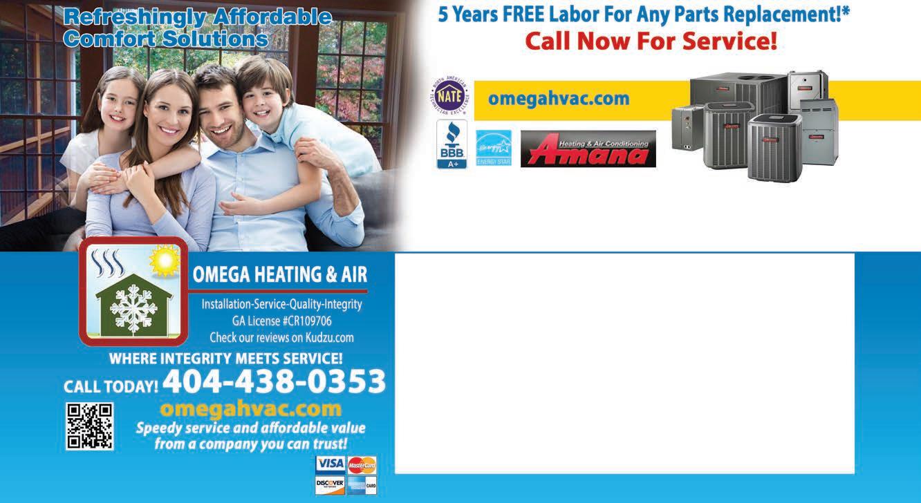 22 To advertise or to view previous issues, go to our new website at www.TheShopper.net 0% FINANCING FOR 60 MONTHS ON QUALIFYING SYSTEMS! Free Service Call & 10% Discount for all Seniors, Military, Teachers and First Responders $500 VISA CARD MANUFACTURERS REBATE* *ON SELECT SYSTEMS FREE FREON WITH REPAIRS “We are praying for all families affected by Cov-19” OMEGA HEATING & AIR 404-438-0353 Must present coupon when receiving estimate. Cannot becombined with other coupons. Offer expires 11/30/22. $69.95 HEAT TUNE UP & SAFETY INSPECTION WITH FREE 1” AIR-FILTER $3490.00 2 TON AIR-CONDITION UNIT WITH MATCHING COIL AND FURNACE OMEGA HEATING & AIR 404-438-0353 Must present coupon when receiving estimate. Cannot becombined with other coupons. Offer expires 11/30/22. NEW AIR CONDITION UNIT $2400.00 WITH MATCHING COIL 2 TON STARTING AT OMEGA HEATING & AIR 404-438-0353 Must present coupon when receiving estimate. Cannot becombined with other coupons. Offer expires 11/30/22. OMEGA HEATING & AIR 404-438-0353 Must present coupon when receiving estimate. Cannot becombined with other coupons. Offer expires 11/30/22. BREATHE EASY WITH WHOLE HOUSE AIR CLEANER AND PURIFICATION SYSTEM. PROVEN TO KILL COVID-19. 10% DISCOUNT FOR ALL REPAIR WORK $1299.00 FREE THERMOSTAT NEW FURNACE WITH *System maintenance required. October 2022 Only. Call for Details. OMEGA HEATING & AIR • 404-438-0353