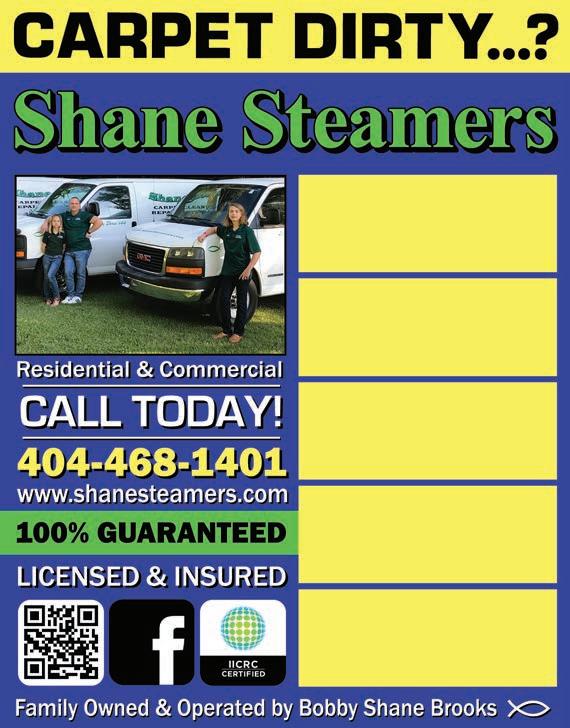 For information about advertising, call us at 770.954.1983/954.1984 23 Advantage Local Apple experts since 1991 Save $50 On your next purchase or repair of $1,000 or more* Or $20 off a purchase of $100 or more.• Show this ad for discount. *Expires August 31, 2023. Not valid on previous purchases. Limit one per customer. PROMOBOS23 2015 Sharpsburg MuCullum Rd Newnan, GA 30265 Call for an appointment (770) 461-2147 www.ComputerAdvantage.us Advantage *Same day repairs subject to technician and parts availability. Appointment is recommneded. Apple, the Apple logo, iPhone, Mac and AppleCare+ are trademarks of Apple Inc., registered in the U.S. and other countries. LOCAL APPLE EXPERTS • Apple® Genuie Parts • Apple Certified Technicians • Warranty, AppleCare+® & out of warranty repairs • Same day repair on most iPhone displays and batteries* Apple Authorized Repairs for iPhone® & Mac® Need Help with your Apple devices? We can help with: • iCloud Syncing • Device Setup • Data Transfers • General Training • And more Apple Authorized since 1991. NEW LOCATION SERVICES OFFERED • Residential • Professional Offices • Small Businesses • Basic Cleaning - Weekly - Bi-Weekly - Monthly • One Time Deep Cleaning Call or Text Norma 678-852-9547 FREE ESTIMATES CLEANING SPECIAL 20% OFF New Clients Only Deep Clean NOT Included