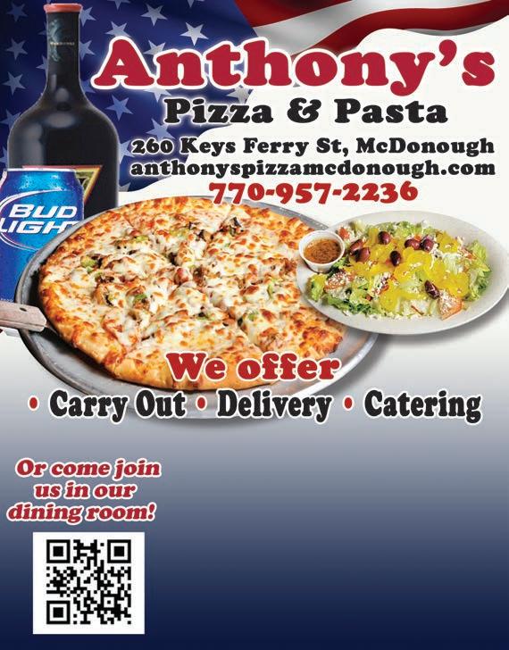 10 Food & Dining To Advertise or for information, go to new website at www.TheShopper.net 25% OFF YOUR PURCHASE With coupon. Cannot combine offers. Only valid at home location. No reprints or QR’s accepted. TSHNET. Exp.6/30/23 COME TRY OUR NEW SHAKES FLOATS AND WE’VE GONE MOBILE! We’re Bringing Great Taste To Your Event with our NEW MOBILE UNIT BOOK YOUR EVENTS NOW!! Pineapple Dole is Back! Pineapple Dole is Back! theitalianoven.com 938 Eagles Landing Parkway Stockbridge, GA 30281 770.507.4827 Great pizza and pasta dinners at a price you’ll love. A PURCHASE OF 2 LUNCH ENTREES Good toward food and beverage purchases (excluding alcohol). Coupon must be presented at time of order. One coupon per party per visit. Not valid with any other discount o ers. O er expires 6/30/23. Good toward food and beverage purchases (excluding alcohol). Coupon must be presented at time of order. One coupon per party per visit. Not valid with any other discount o ers. O er expires 6/30/23. BUY ONE ENTREE, GET ANOTHER ENTREE OF EQUAL OR LESSER VALUE Temporary Hours Closed Mond ay Tues- ur s 11-9 pm Fr id ay 11-10pm Satu rd ay 12 -10pm Sunday 11-9 pm NOW HIRING ALL POSITIONS